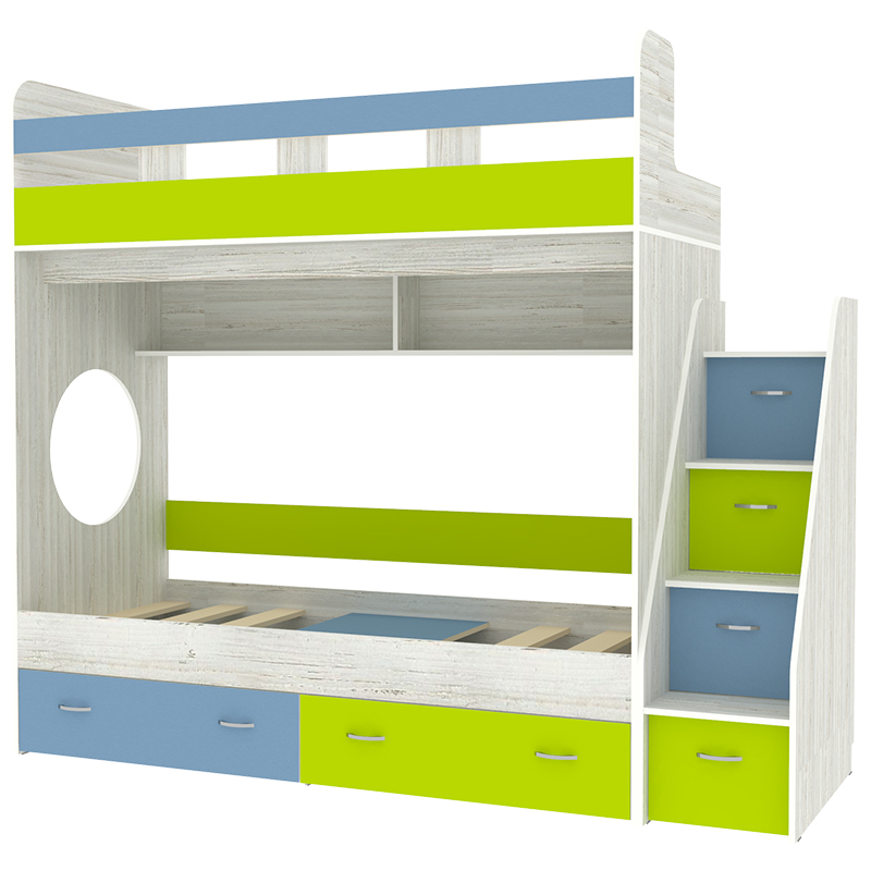 Вы можете купить Двухъярусная кровать КарИВи Юниор 1 80x160 Винтерберг Голубой, Лайм оптом в нашем магазине, предложим цену с оптовой скидкой.