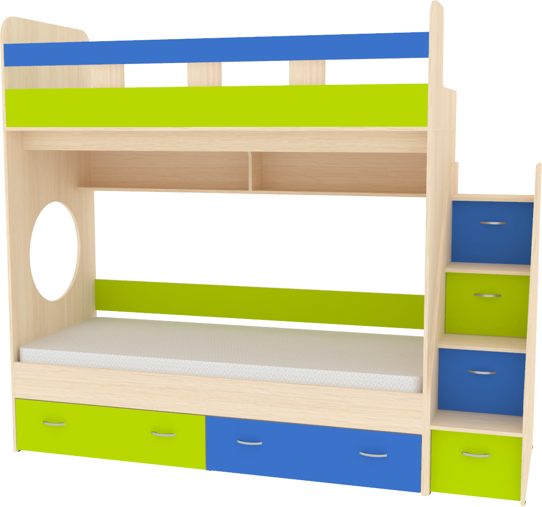 Кровать чердак Юниор 1 решает проблему малого пространства сочетая в себе целый ряд функций: спальное место для двоих, навесная полка для книг и игрушек, вместительные выдвижные ящики под кроватью, а так же приставная лестница расположенная сбоку, обеспечивающая быстрый и безопасный доступ на второй этаж, с безопасными ступенями в виде выдвижных ящиков. Нижний ярус можно использовать как диван. А при добавлении бортика, диванчик превращается в кровать. Все цветные фасады со светло-бежевой кромкой. Ступеньки лестницы представляют собой небольшие ящички, в которые можно сложить нижнее белье ребенка, игрушки и иные вещи. Модель универсальна - сторона определяется при сборке. Матрасы в комплект не входят - приобретаются отдельно. Дополнительный бортик на нижний ярус приобретается отдельно !!! Стоимость подъема на лифте Юниор 1 со спальными местами 90х200 составляет 1 200 руб !!!Характеристики
