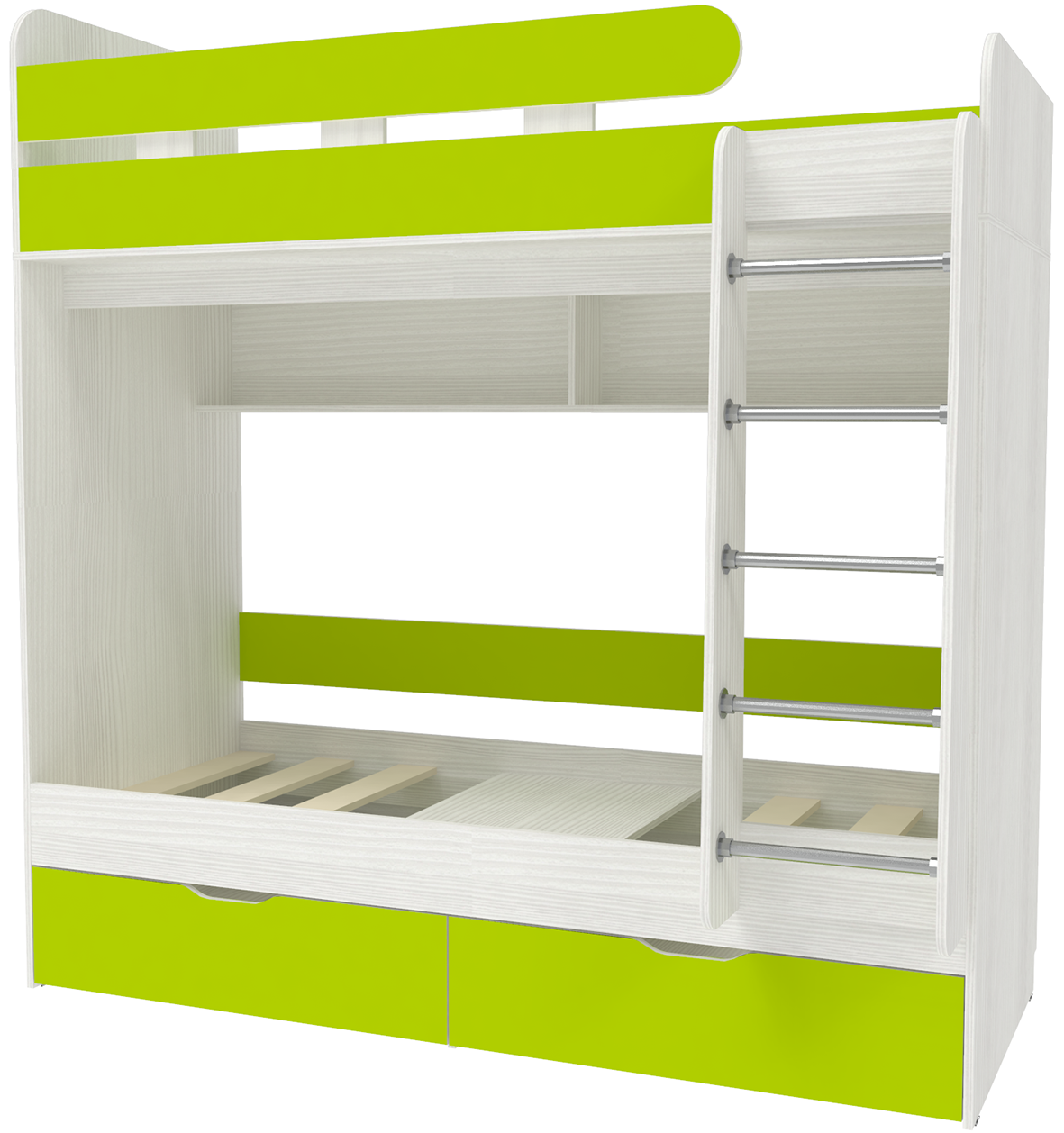 Двухъярусная кровать Юниор 5 80х190 Белое Дерево Лайм