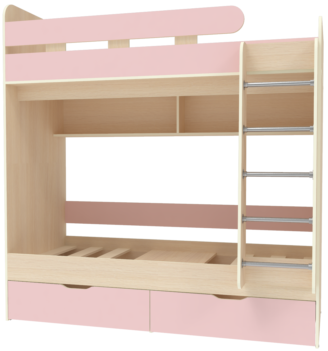 Двухъярусная кровать Юниор 5 80х190 Дуб Молочный Розовый