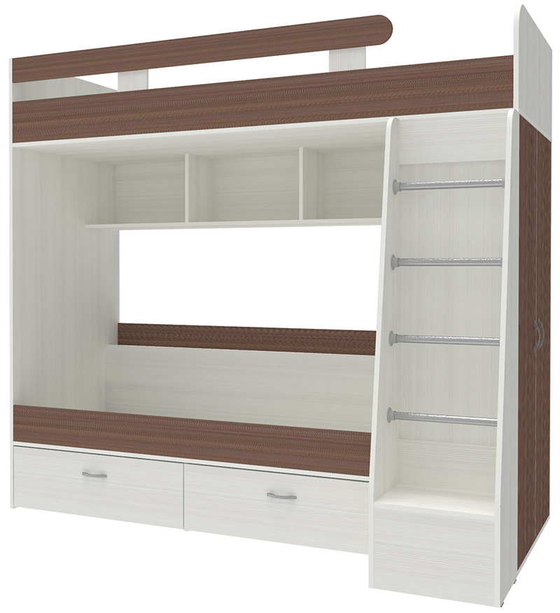 Двухъярусная кровать Юниор 6 Белое Дерево Бодего Темный