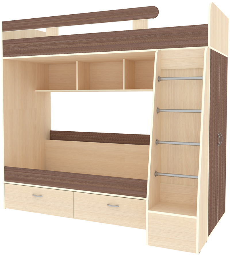 Кровать чердак Юниор 6решает проблему малого пространства сочетая в себе целый ряд функций: - Спальное место для двоих - Шкаф для одежды - Навесная полка для книг и игрушек - Вместительные выдвижные ящики под кроватью - Нижний ярус можно использовать как диван, при добавлении бортика, диванчик превращается в кровать. У цветных фасадов светло-бежевая кромка. Размеры:204*114*187 см. Нижнее спальное место: 1600*700 мм. Верхнее спально место:2000*800 мм.Характеристики