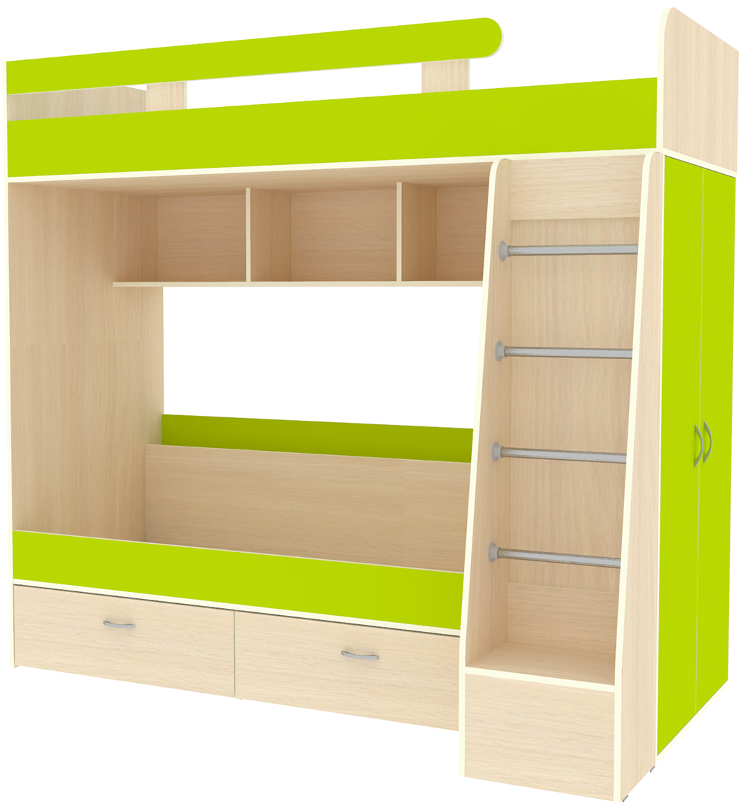 Двухъярусная кровать Юниор 6 Дуб Молочный Лайм