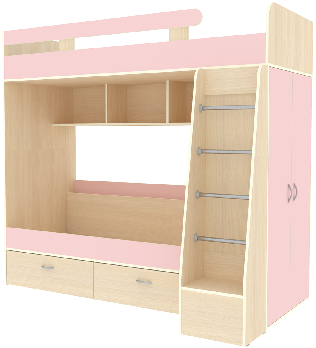 Двухъярусная кровать Юниор 6 Дуб Молочный Розовый