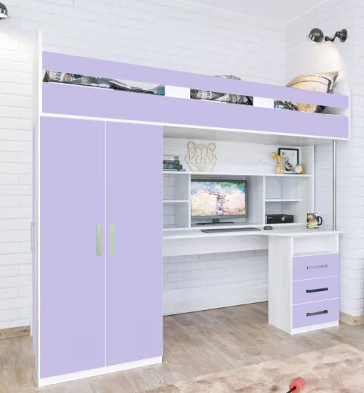 Кровать чердак Аракс - уникальная модель, которая непременно понравится своей комфортностью, оригинальностью и многофункциональностью всем членам семьи. Несмотря на обилие функциональных предметов, этот комплекс выглядит аккуратно. На цветных фасадах светло-бежевая кромка. Матрас для кровати вы можете приобрести отдельно в разделедетских матрасов. Также мы предлагаем ниже в разделе Аксессуары наиболее оптимальные варианты для данной кроватиХарактеристики