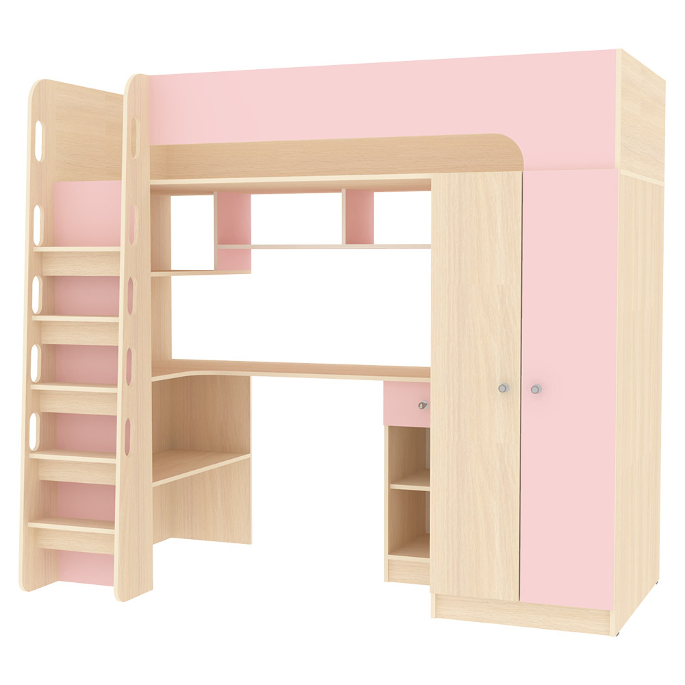 Кровать-чердак Астра 10 Дуб Молочный Розовый