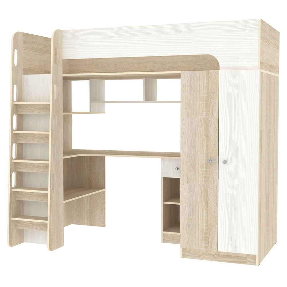 Кровать-чердак Астра 10 Дуб Сонома Белое Дерево