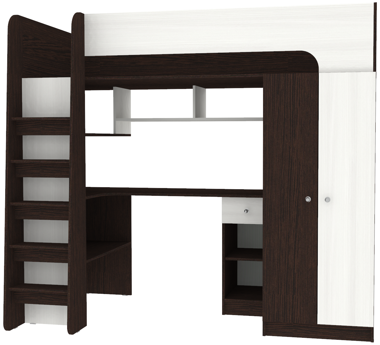 Кровать-чердак Астра 10 Венге Белое Дерево