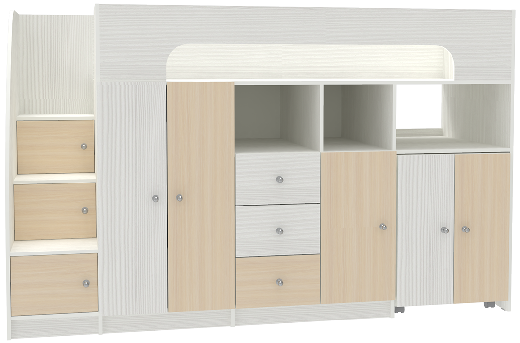 Кровать-чердак Астра 11 Белое Дерево Дуб Молочный