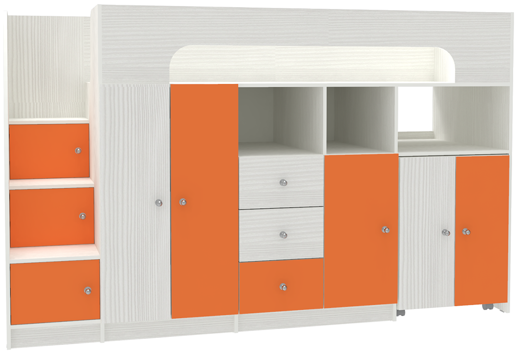Кровать-чердак Астра 11 Белое Дерево Оранжевый