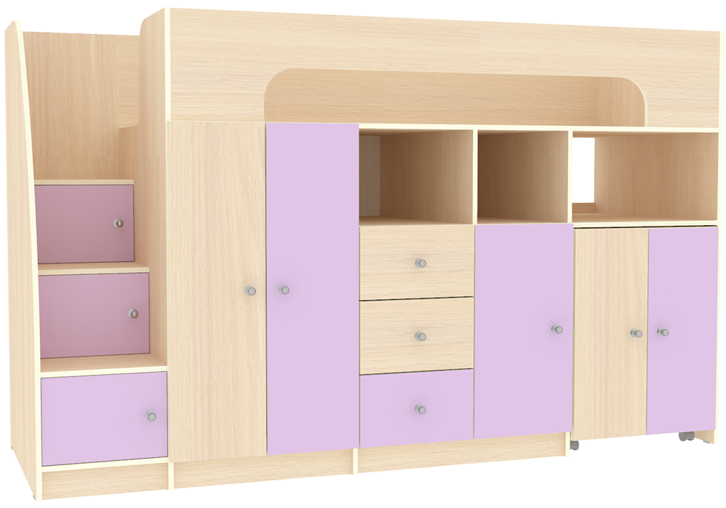 Обратите внимание, фабрика изменила конструкцию стола в кровати Астра 11, т.к. предыдущая версия стола не отличалась высокой надежностью. Было принято решение переработать данный узел с целью повышения его потребительских характеристик. Теперь Астра 11 имеет полнофункциональный выкатной стол. Габариты: Ш1942хГ842хВ1430 мм Спальное место: 800х1900 ммМатериал: европейская ЛДСП (ДСП класса Е1), импортная фурнитура, все лицевые кромки покрыты ПВХ Максимальная нагрузка при интенсивной эксплуатации (с учётом матраса) – 100 кг Универсальная сборка, при необходимости собирается как в левую, так и в правую стороны т.е. расположение элементов мебели определяется при сборке Не рекомендуем матрас высотой более чем 14 см. Дно кровати – лист ДСП 16 мм- Наполнение шкафа: 3 полки, штанга для плечиков. - Шариковые направляющие стола. - Роликовые направляющие ящиков. - Дверцы под лестницей открываются вбок. Матрасы необходимо приобретать отдельно.