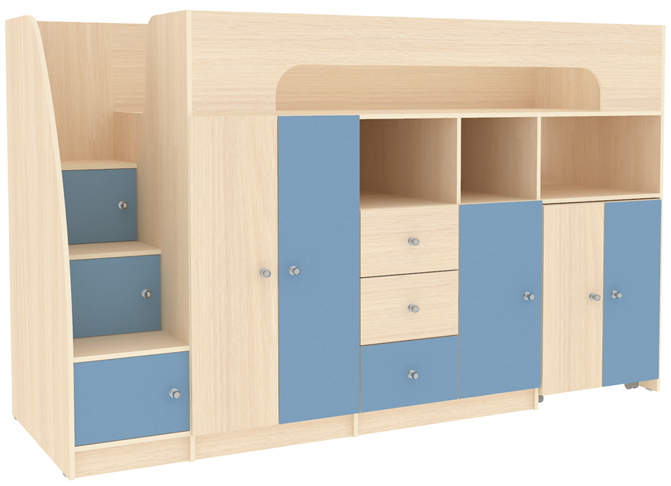 Вы можете купить Кровать-чердак КарИВи Астра 11 Дуб Молочный Светло-синий, голубой оптом в нашем магазине, предложим цену с оптовой скидкой.