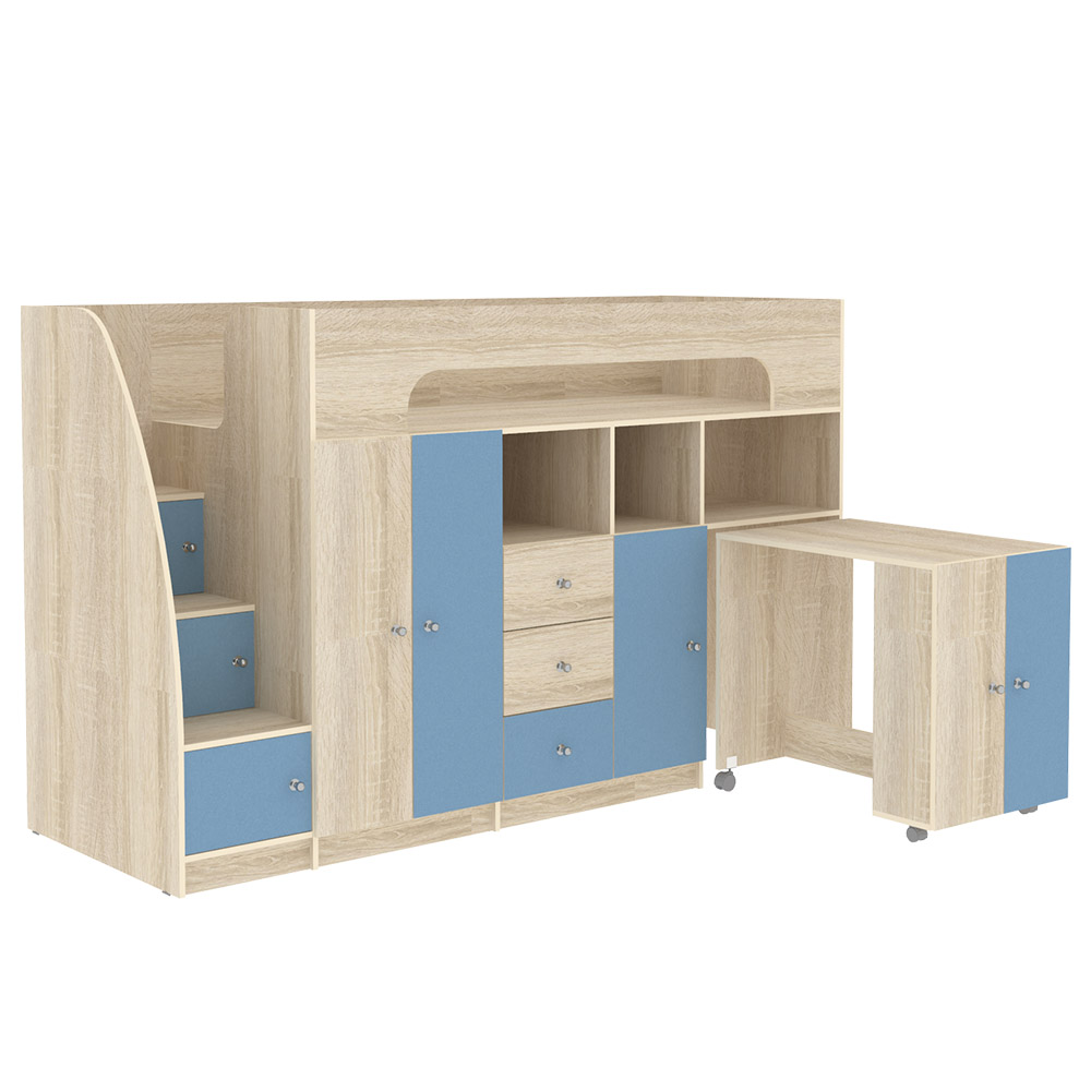 Кровать-чердак Астра 11 Дуб Сонома Светло-синий, голубой