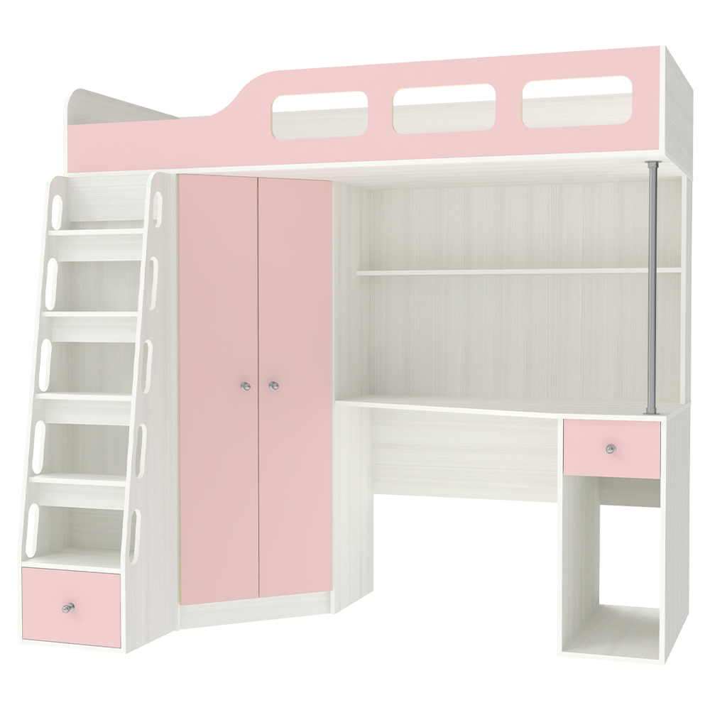 Кровать-чердак Астра 7 Белое Дерево Розовый