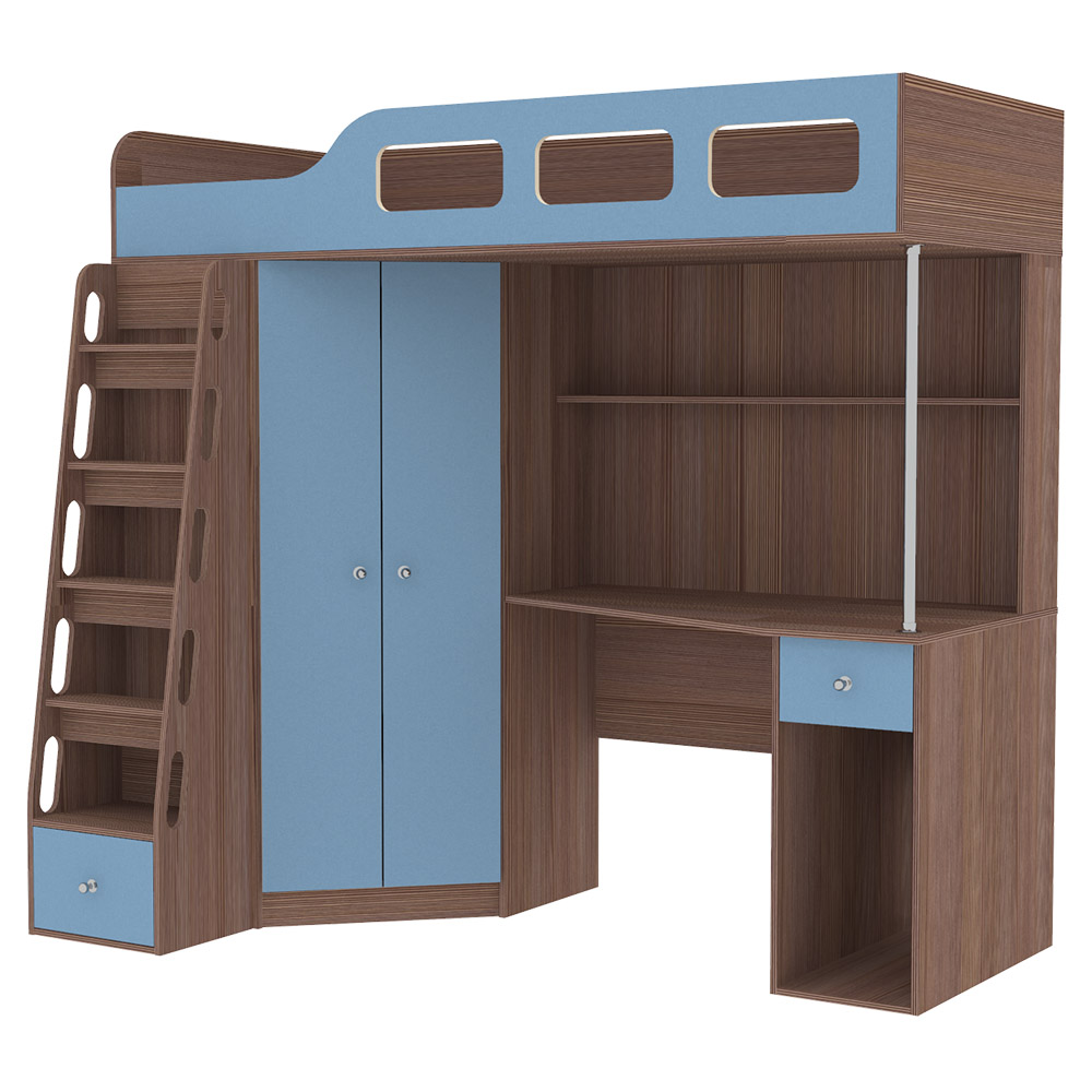 Кровать-чердак Астра 7 Бодего Темный Светло-синий, голубой