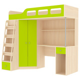 Многофункциональный комплекс для младших школьников и подростков. Особенность модели в компактных размерах, что позволит освободить в комнате больше пространства для игр. Разнообразие цветовых решений позволит подобрать комплекс под любой интерьер. В составе модуля есть удобная кровать-чердак с безопасным бортиком. Внизу располагается рабочее место с компьютерным столом и полкой для книг. Стол оборудован нишей для системного блока и ящиком для канцелярских принадлежностей. В конструкции комплекса продуман вместительный угловой шкаф со штангой и полками. Широкая лестница позволит легко взобраться на второй этаж, а в небольшом ящике в основании лесенки будет удобно хранить различные мелочи. Модель универсальна - сторона определяется при сборке. Цвет кромки на цветных фасадах - светло-бежевая. Матрасы в комплект не входят - приобретаются отдельно.Характеристики