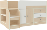 Кровать-чердак Астра 9 (вариант 1) станет настоящей находкой для заботливых родителей. Комплект мебели компактный и функциональный, ведь он имеет все необходимое для ребенка: просторное и комфортное спальное место, лестницу для безопасного подъема и спуска, вместительную тумбу с дверцами и три выдвижных ящика для аккуратного хранения одежды и белья. Купив ребёнку кровать-чердак Астра 9 (вариант 1) вы подарите ребенку яркое детство и расширите пространство в комнате для игр. Цвет кромки на всех цветных фасадах - светло-бежевый. Универсальная сборка: при необходимости собирается как в левую, так и в правую стороны.Характеристики