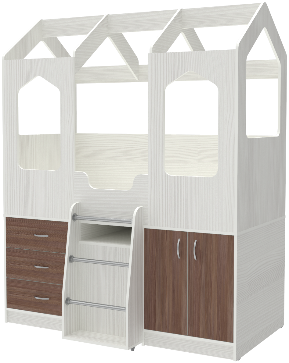 Кровать-чердак Домик Сказка с выдвижным столом ДС-14 Белое Дерево Бодего Темный