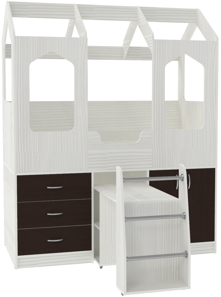 Кровать-чердак Домик Сказка с выдвижным столом ДС-14 Белое Дерево Венге