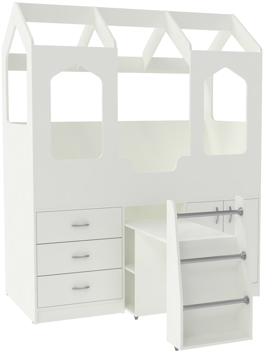 Кровать-чердак Домик Сказка с выдвижным столом ДС-14 Белый Белый