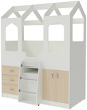 Кровать-чердак Домик Сказка с выдвижным столом ДС-14 Белый Дуб Молочный