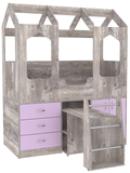 Кровать-чердак Домик Сказка с выдвижным столом ДС-14 Бетон Ирис