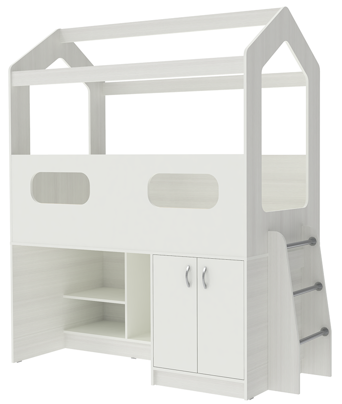 Кровать-чердак ДС-12 — уютный домик с нижним ярусом для игры, разработан для детей от 3-х лет. Передний бортик с окошком имеет высоту 51,5 см. Можно оформить заказ в цвете Белое дерево или с цветным фасадом. На деталях в цвете Лайм, Розовый, Ирис, Оранжевый и Синий цвет кромки – светло-бежевый. Под спальным местом можно легко организовать игровую зону для ребенка с полочками и шкафчиком, или же удобное и вместительное место для хранения. Компактная и функциональная кровать с личным игровым пространством для детей не занимает много места и станет прекрасным решением для небольших квартир. Матрас приобретается отдельно.Характеристики