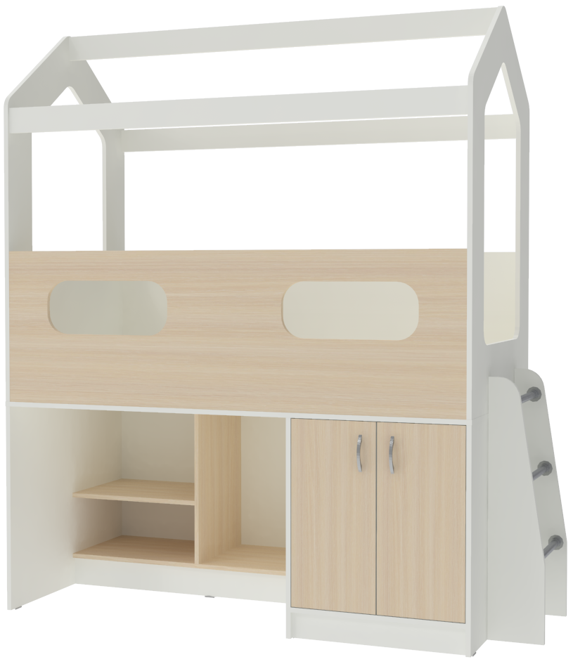 Кровать-чердак ДС-12 — уютный домик с нижним ярусом для игры, разработан для детей от 3-х лет. Передний бортик с окошком имеет высоту 51,5 см. Можно оформить заказ в цвете Белое дерево или с цветным фасадом. На деталях в цвете Лайм, Розовый, Ирис, Оранжевый и Синий цвет кромки – светло-бежевый. Под спальным местом можно легко организовать игровую зону для ребенка с полочками и шкафчиком, или же удобное и вместительное место для хранения. Компактная и функциональная кровать с личным игровым пространством для детей не занимает много места и станет прекрасным решением для небольших квартир. Матрас приобретается отдельно.Характеристики