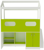 Кровать-чердак ДС-12 — уютный домик с нижним ярусом для игры, разработан для детей от 3-х лет. Передний бортик с окошком имеет высоту 51,5 см. Можно оформить заказ в цвете Белое дерево или с цветным фасадом. На деталях в цвете Лайм, Розовый, Ирис, Оранжевый и Синий цвет кромки – светло-бежевый. Под спальным местом можно легко организовать игровую зону для ребенка с полочками и шкафчиком, или же удобное и вместительное место для хранения. Компактная и функциональная кровать с личным игровым пространством для детей не занимает много места и станет прекрасным решением для небольших квартир. Матрас приобретается отдельно.Характеристики