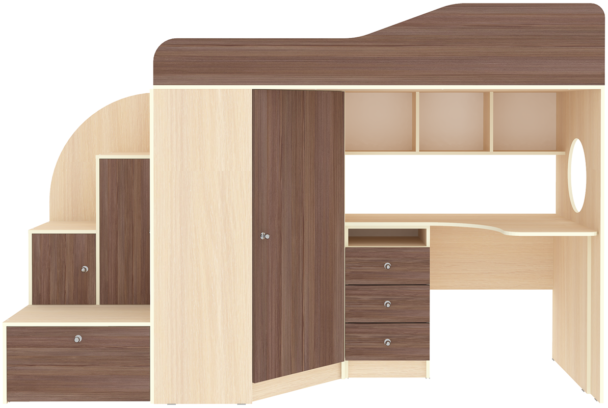 Кровать чердак Кадет 1 оснащен одним спальным местом, необычными ступенями с дверцами для хранения игрушек, письменным столом с тремя выдвижными ящиками под столешницей, полкой над столешницей и угловым шкафом для одежды. Данная модель подойдет как для детей младших классов, так и для детей более старшего возраста. Такая модель кровати поразит вас своей компактностью, вместительностью и практичностью. Комплектация:- Кровать чердак ( спальное место 80 х 190 см), размеры (Д*Г*В): 1932*832*1716 мм
