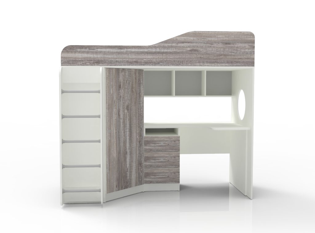 Вы можете купить Кровать-чердак КарИВи Кадет 1 с металлической лестницей Белый Бетон оптом в нашем магазине, предложим цену с оптовой скидкой.