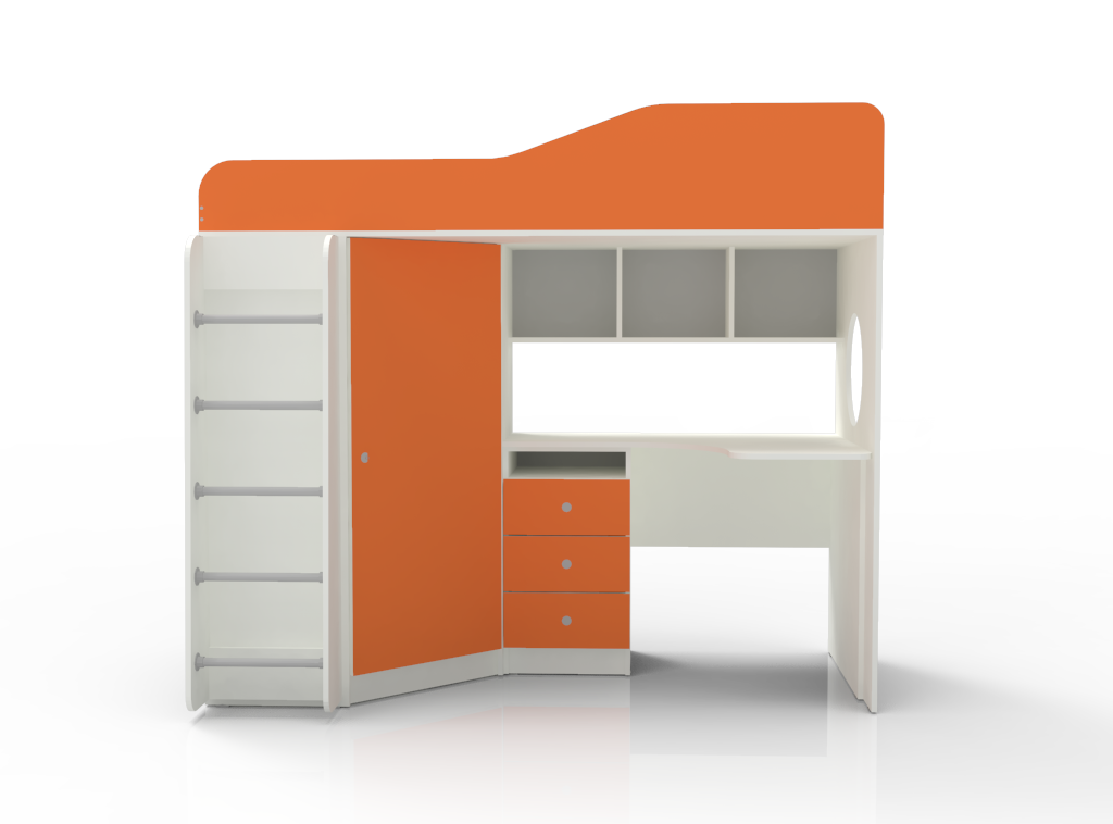 Вы можете купить Кровать-чердак КарИВи Кадет 1 с металлической лестницей Белый Оранжевый оптом в нашем магазине, предложим цену с оптовой скидкой.