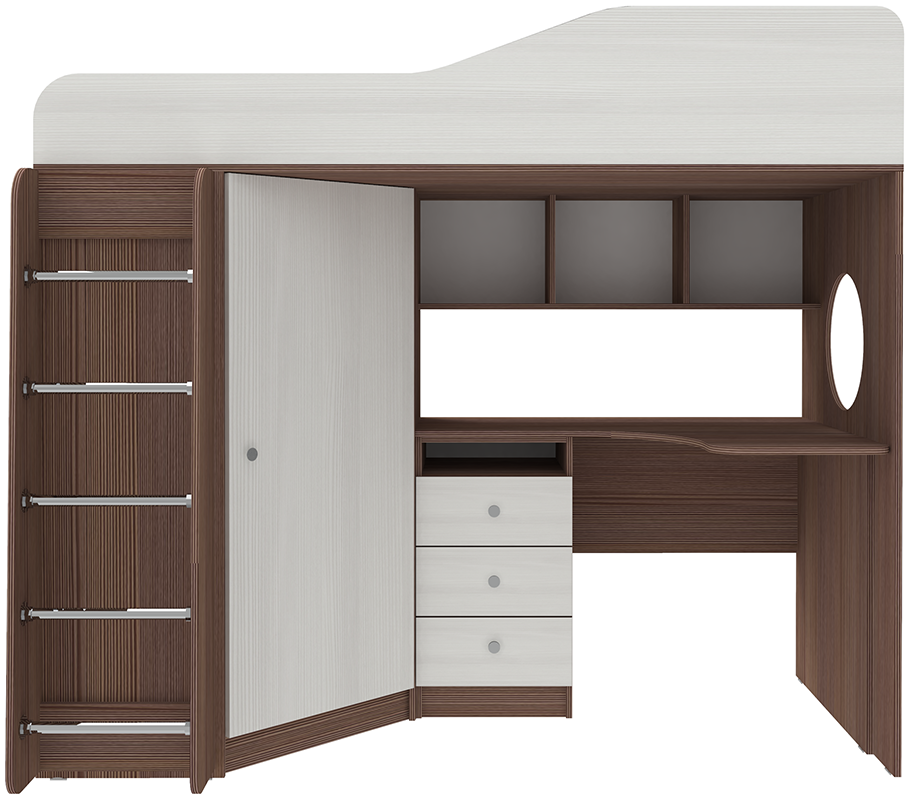 Кровать-чердак Кадет 1 с металлической лестницей Бодего Темный Белое Дерево
