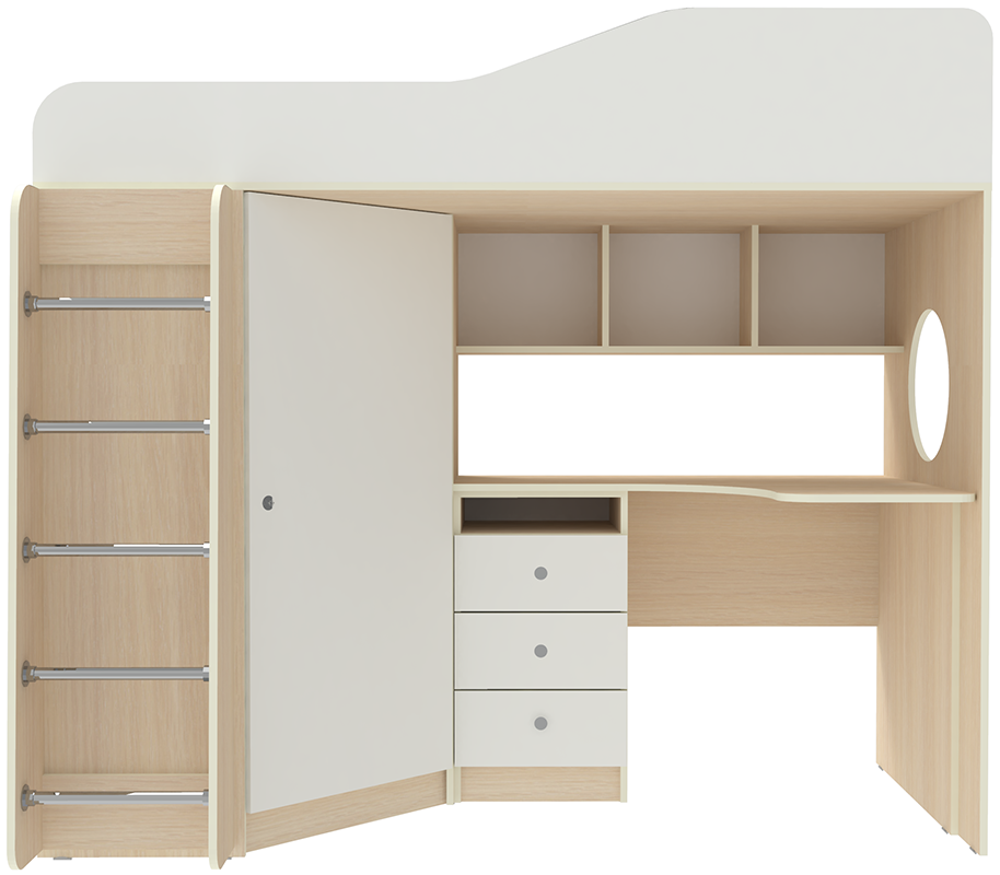 Вы можете купить Кровать-чердак КарИВи Кадет 1 с металлической лестницей Дуб Молочный Белый оптом в нашем магазине, предложим цену с оптовой скидкой.