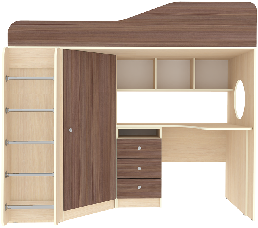 Кровать-чердак Кадет 1 оснащен одним спальным местом, металлической наставной лестницей, письменным столом с тремя выдвижными ящиками под столешницей, полкой над столешницей и угловым шкафом для одежды. Данная модель подойдет как для детей младших классов, так и для детей более старшего возраста. Такая кровать поразит вас своей компактностью, вместительностью и практичностью. Комплектация: - Кровать чердак ( спальное место 80 х 190 см), размеры (Д*Г*В): 1932*832*1716 мм - Встроенный угловой шкаф с полками и штангой для одежды - Письменный стол с тумбой под столом - Металлическая лестница - Стеллаж для книг под спальным местом Основные параметры : - Кроватный модуль, размеры (Д*Г*В): 1932*1032*1716 мм - Спальное место: 800*1900 мм - Угловой шкаф, размеры (Д*Г*В): 832*832*1350 мм - Стол, размеры (Д*Г*В): 1100*740*735 мм - Лестница, размеры (Д*Г*В): 400*200*1300 мм - Высота борта: 350 мм Материалы, используемые при изготовлении:Ламинированная ДСП, края лестницы, борта кровати декорированы противоударной кромкой ПВХ.На цветных фасадах: цвет кромки - бежевый. Модель универсальна - сторона определяется при сборке. Матрасы в комплект не входят - приобретаются отдельно. Рекомендованная высота матраса: 50-150 ммХарактеристики