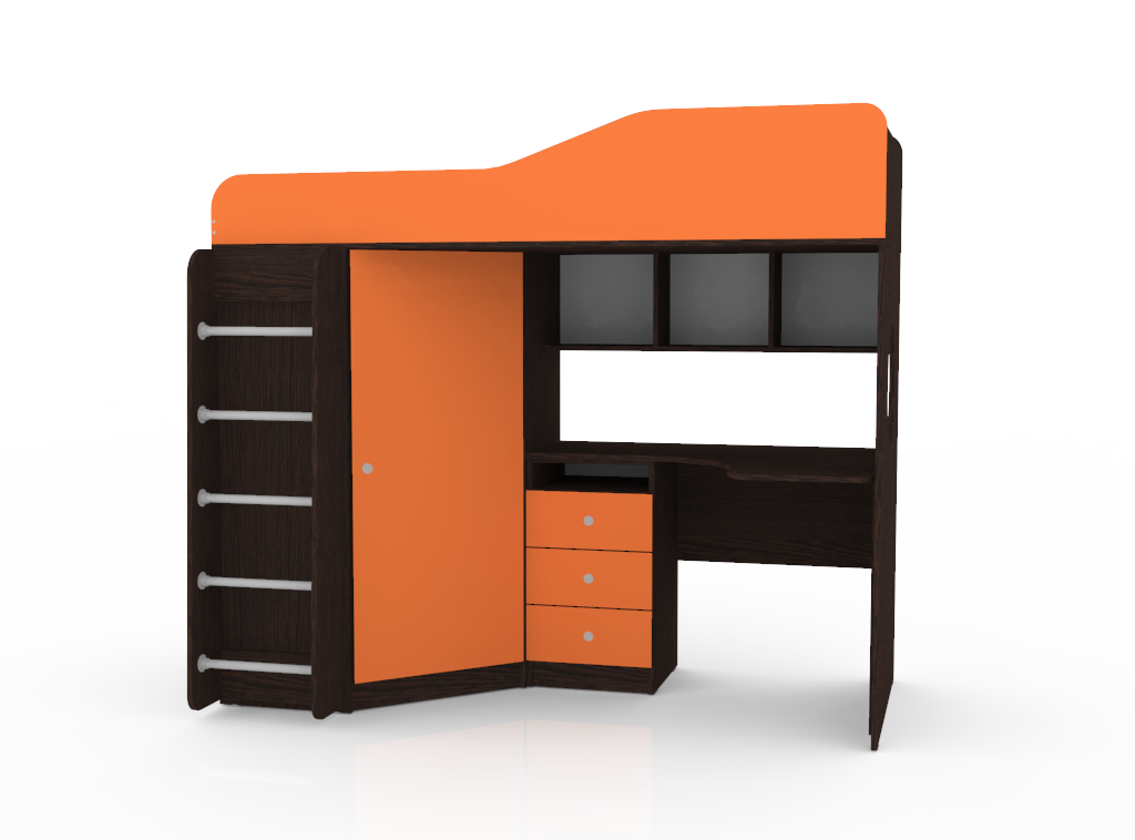 Вы можете купить Кровать-чердак КарИВи Кадет 1 с металлической лестницей Венге Оранжевый оптом в нашем магазине, предложим цену с оптовой скидкой.