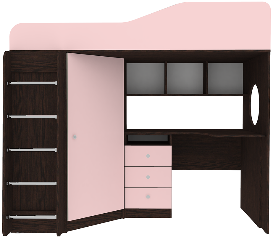 Вы можете купить Кровать-чердак КарИВи Кадет 1 с металлической лестницей Венге Розовый оптом в нашем магазине, предложим цену с оптовой скидкой.