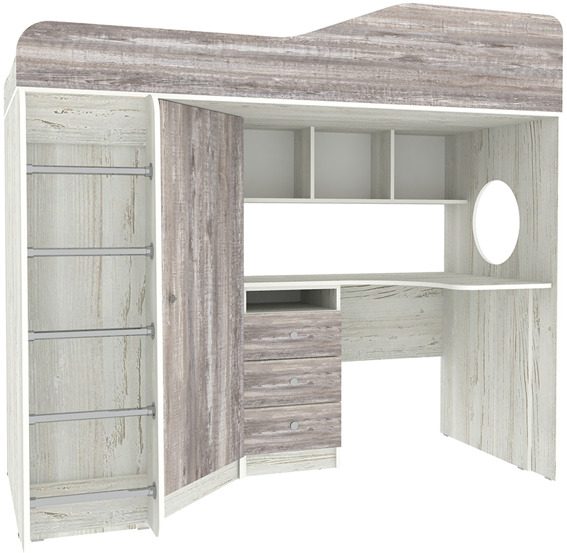 Кровать-чердак Кадет 1 оснащен одним спальным местом, металлической наставной лестницей, письменным столом с тремя выдвижными ящиками под столешницей, полкой над столешницей и угловым шкафом для одежды. Данная модель подойдет как для детей младших классов, так и для детей более старшего возраста. Такая кровать поразит вас своей компактностью, вместительностью и практичностью. Комплектация: - Кровать чердак ( спальное место 80 х 190 см), размеры (Д*Г*В): 1932*832*1716 мм - Встроенный угловой шкаф с полками и штангой для одежды - Письменный стол с тумбой под столом - Металлическая лестница - Стеллаж для книг под спальным местом Основные параметры : - Кроватный модуль, размеры (Д*Г*В): 1932*1032*1716 мм - Спальное место: 800*1900 мм - Угловой шкаф, размеры (Д*Г*В): 832*832*1350 мм - Стол, размеры (Д*Г*В): 1100*740*735 мм - Лестница, размеры (Д*Г*В): 400*200*1300 мм - Высота борта: 350 мм Материалы, используемые при изготовлении:Ламинированная ДСП, края лестницы, борта кровати декорированы противоударной кромкой ПВХ.На цветных фасадах: цвет кромки - бежевый. Модель универсальна - сторона определяется при сборке. Матрасы в комплект не входят - приобретаются отдельно. Рекомендованная высота матраса: 50-150 ммХарактеристики