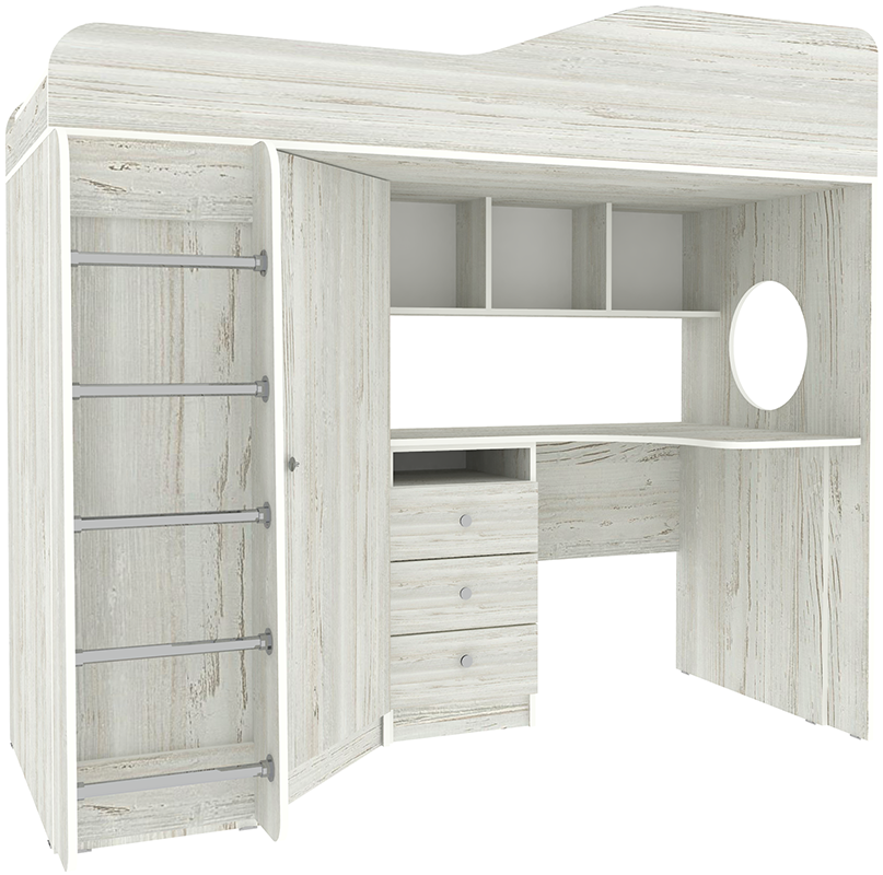 Кровать-чердак Кадет 1 оснащен одним спальным местом, металлической наставной лестницей, письменным столом с тремя выдвижными ящиками под столешницей, полкой над столешницей и угловым шкафом для одежды. Данная модель подойдет как для детей младших классов, так и для детей более старшего возраста. Такая кровать поразит вас своей компактностью, вместительностью и практичностью. Комплектация: - Кровать чердак ( спальное место 80 х 190 см), размеры (Д*Г*В): 1932*832*1716 мм - Встроенный угловой шкаф с полками и штангой для одежды - Письменный стол с тумбой под столом - Металлическая лестница - Стеллаж для книг под спальным местом Основные параметры : - Кроватный модуль, размеры (Д*Г*В): 1932*1032*1716 мм - Спальное место: 800*1900 мм - Угловой шкаф, размеры (Д*Г*В): 832*832*1350 мм - Стол, размеры (Д*Г*В): 1100*740*735 мм - Лестница, размеры (Д*Г*В): 400*200*1300 мм - Высота борта: 350 мм Материалы, используемые при изготовлении:Ламинированная ДСП, края лестницы, борта кровати декорированы противоударной кромкой ПВХ.На цветных фасадах: цвет кромки - бежевый. Модель универсальна - сторона определяется при сборке. Матрасы в комплект не входят - приобретаются отдельно. Рекомендованная высота матраса: 50-150 ммХарактеристики