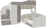 Кровать чердак Кадет 2 оснащен двумя спальными местами, необычными ступенями с дверцами для хранения игрушек и угловым шкафом для одежды и белья. Данная модель подойдет как для детей младших классов, так и для детей более старшего возраста. Такая кровать поразит вас своей компактностью, вместительностью и практичностью. Основные параметры: - Кроватный модуль, размеры (Д*Г*В): 257*204*172см - Верхнее спальное место: 800*1900 мм - Нижнее спальное место: 900*2000 мм - Угловой шкаф, размеры (Д*Г*В): 832*832*1350 мм - Лестница, размеры (Д*Г*В): 646*832*1350 мм - Высота борта: 350 мм - Рекомендованная высота матраса: 50-150 мм Материалы, используемые при изготовлении:Ламинированная ДСП, края лестницы, борта кровати декорированы противоударной кромкой ПВХ.На цветных фасадах: цвет кромки - бежевый. Модель универсальна - сторона определяется при сборке. Матрасы в комплект не входят - приобретаются отдельно.Характеристики