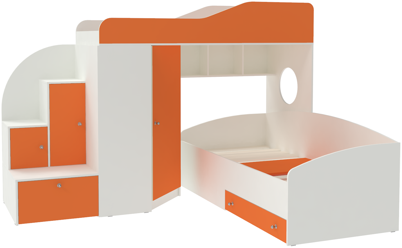 Кровать-чердак Кадет 2 Белый Оранжевый