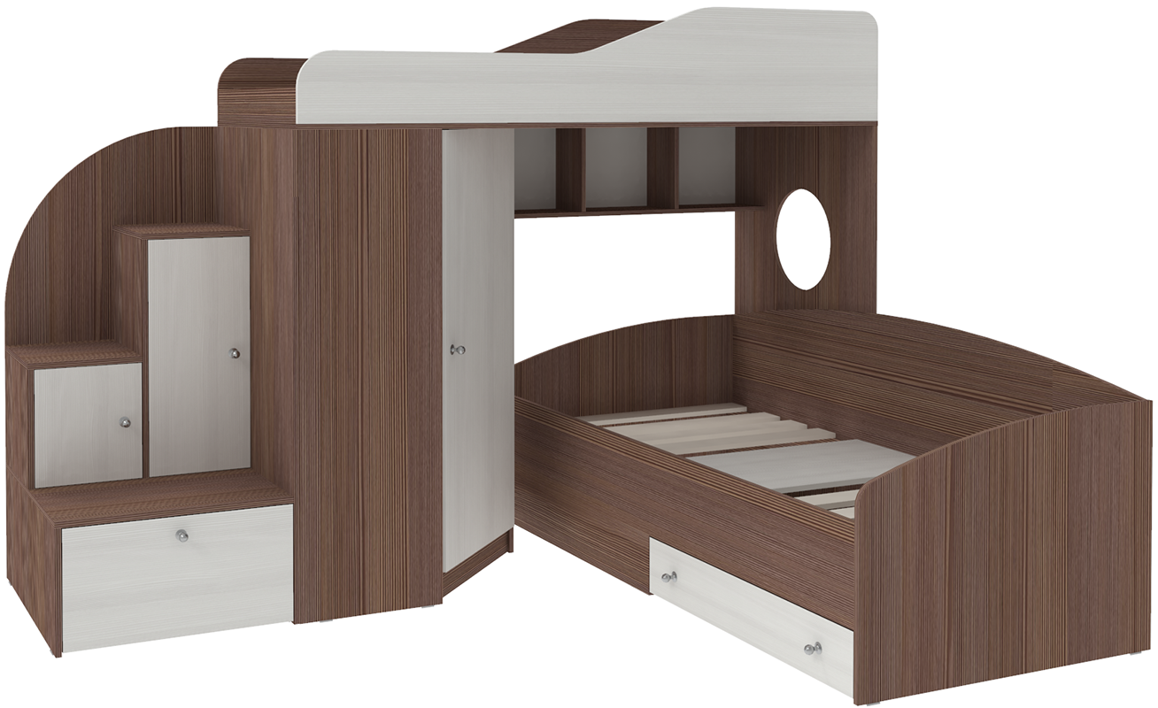 Кровать чердак Кадет 2 оснащен двумя спальными местами, необычными ступенями с дверцами для хранения игрушек и угловым шкафом для одежды и белья. Данная модель подойдет как для детей младших классов, так и для детей более старшего возраста. Такая кровать поразит вас своей компактностью, вместительностью и практичностью. Основные параметры: - Кроватный модуль, размеры (Д*Г*В): 257*204*172см - Верхнее спальное место: 800*1900 мм - Нижнее спальное место: 900*2000 мм - Угловой шкаф, размеры (Д*Г*В): 832*832*1350 мм - Лестница, размеры (Д*Г*В): 646*832*1350 мм - Высота борта: 350 мм - Рекомендованная высота матраса: 50-150 мм Материалы, используемые при изготовлении:Ламинированная ДСП, края лестницы, борта кровати декорированы противоударной кромкой ПВХ.На цветных фасадах: цвет кромки - бежевый. Модель универсальна - сторона определяется при сборке. Матрасы в комплект не входят - приобретаются отдельно.Характеристики