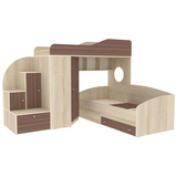 Кровать чердак Кадет 2 оснащен двумя спальными местами, необычными ступенями с дверцами для хранения игрушек и угловым шкафом для одежды и белья. Данная модель подойдет как для детей младших классов, так и для детей более старшего возраста. Такая кровать поразит вас своей компактностью, вместительностью и практичностью. Основные параметры: - Кроватный модуль, размеры (Д*Г*В): 257*204*172см - Верхнее спальное место: 800*1900 мм - Нижнее спальное место: 900*2000 мм - Угловой шкаф, размеры (Д*Г*В): 832*832*1350 мм - Лестница, размеры (Д*Г*В): 646*832*1350 мм - Высота борта: 350 мм - Рекомендованная высота матраса: 50-150 мм Материалы, используемые при изготовлении:Ламинированная ДСП, края лестницы, борта кровати декорированы противоударной кромкой ПВХ.На цветных фасадах: цвет кромки - бежевый. Модель универсальна - сторона определяется при сборке. Матрасы в комплект не входят - приобретаются отдельно.Характеристики