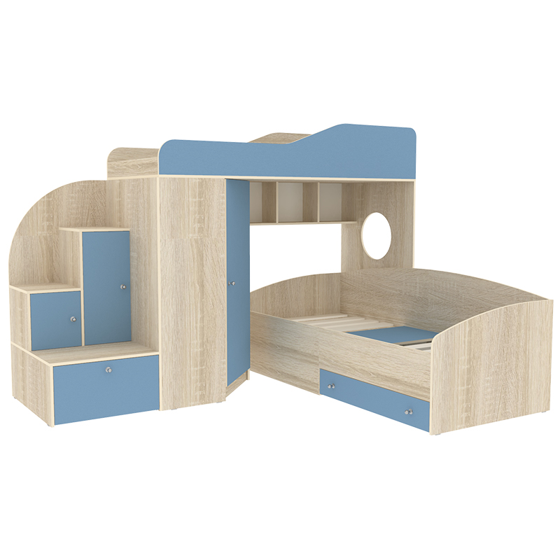 Вы можете купить Кровать-чердак КарИВи Кадет 2 Дуб Сонома Светло-синий, голубой оптом в нашем магазине, предложим цену с оптовой скидкой.