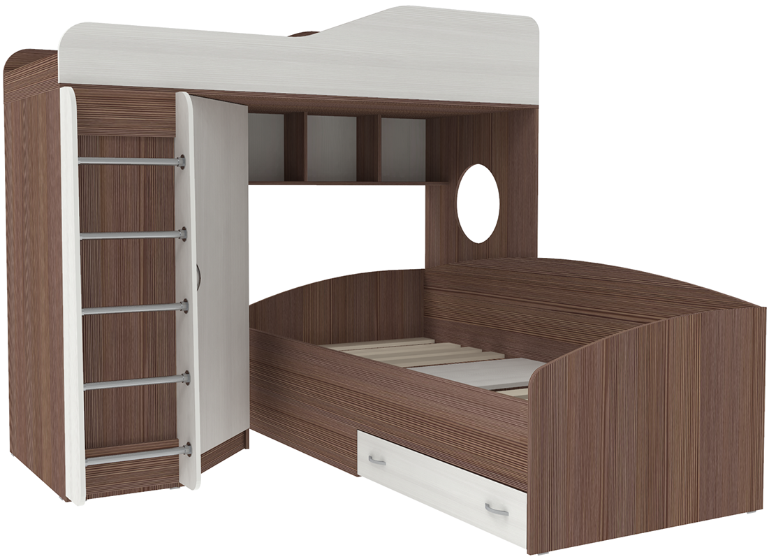 Вы можете купить Кровать-чердак КарИВи Кадет 2 с металлической лестницей Бодего Темный Белое Дерево оптом в нашем магазине, предложим цену с оптовой скидкой.
