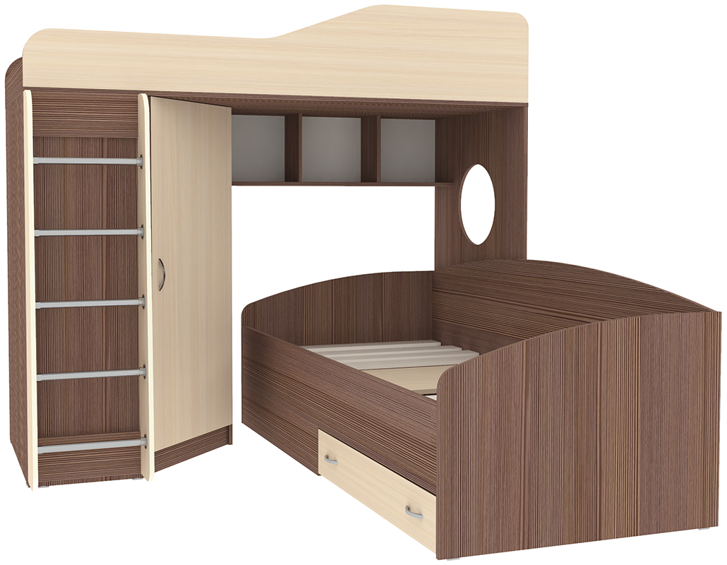 Кровать чердак Кадет 2 оснащен двумя спальными местами, металлической лестницей и угловым шкафом для одежды и белья. Данная модель подойдет как для детей младших классов, так и для детей более старшего возраста. Такая кровать поразит вас своей компактностью, вместительностью и практичностью. Основные параметры: - Кроватный модуль, размеры (Д*Г*В): 1934*2032*1718 мм - Верхнее спальное место: 800*1900 мм - Угловой шкаф, размеры (Д*Г*В): 832*832*1350 мм - Нижнее спальное место: 900*2000 мм - Лестница, размеры (Д*Г*В): 400*200*1300 мм - Высота борта: 350 мм - Рекомендованная высота матраса: 100-150 мм Материалы, используемые при изготовлении:Ламинированная ДСП, края лестницы, борта кровати декорированы противоударной кромкой ПВХ.На цветных фасадах: цвет кромки - бежевый. Модель универсальна - сторона определяется при сборке. Матрасы в комплект не входят - приобретаются отдельно.Характеристики