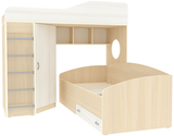 Кровать чердак Кадет 2 оснащен двумя спальными местами, металлической лестницей и угловым шкафом для одежды и белья. Данная модель подойдет как для детей младших классов, так и для детей более старшего возраста. Такая кровать поразит вас своей компактностью, вместительностью и практичностью. Основные параметры: - Кроватный модуль, размеры (Д*Г*В): 1934*2032*1718 мм - Верхнее спальное место: 800*1900 мм - Угловой шкаф, размеры (Д*Г*В): 832*832*1350 мм - Нижнее спальное место: 900*2000 мм - Лестница, размеры (Д*Г*В): 400*200*1300 мм - Высота борта: 350 мм - Рекомендованная высота матраса: 100-150 мм Материалы, используемые при изготовлении:Ламинированная ДСП, края лестницы, борта кровати декорированы противоударной кромкой ПВХ.На цветных фасадах: цвет кромки - бежевый. Модель универсальна - сторона определяется при сборке. Матрасы в комплект не входят - приобретаются отдельно.Характеристики