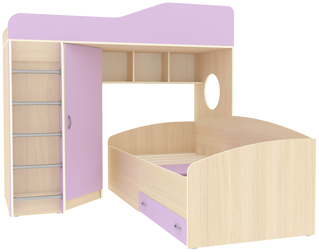 Кровать чердак Кадет 2 оснащен двумя спальными местами, металлической лестницей и угловым шкафом для одежды и белья. Данная модель подойдет как для детей младших классов, так и для детей более старшего возраста. Такая кровать поразит вас своей компактностью, вместительностью и практичностью. Основные параметры: - Кроватный модуль, размеры (Д*Г*В): 1934*2032*1718 мм - Верхнее спальное место: 800*1900 мм - Угловой шкаф, размеры (Д*Г*В): 832*832*1350 мм - Нижнее спальное место: 900*2000 мм - Лестница, размеры (Д*Г*В): 400*200*1300 мм - Высота борта: 350 мм - Рекомендованная высота матраса: 100-150 мм Материалы, используемые при изготовлении:Ламинированная ДСП, края лестницы, борта кровати декорированы противоударной кромкой ПВХ.На цветных фасадах: цвет кромки - бежевый. Модель универсальна - сторона определяется при сборке. Матрасы в комплект не входят - приобретаются отдельно.Характеристики