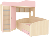 Кровать-чердак Кадет 2 с металлической лестницей Дуб Молочный Розовый