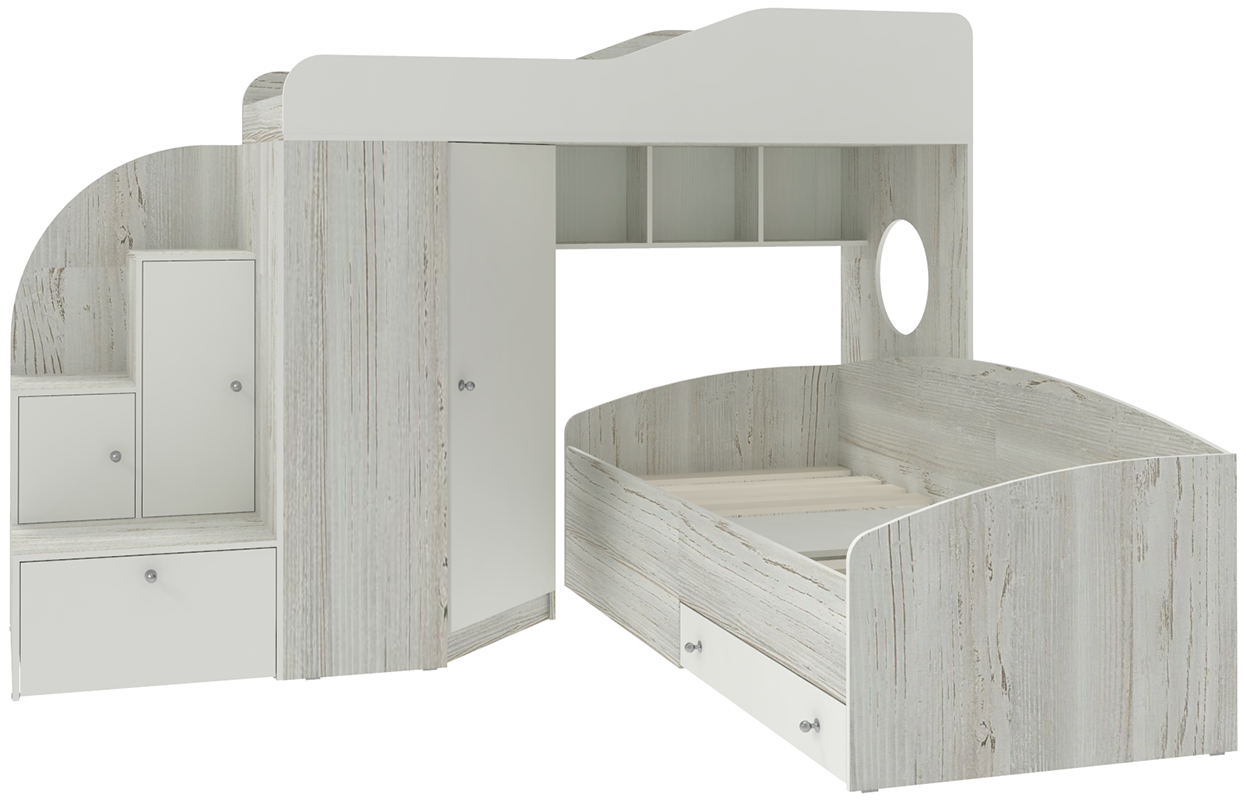 Кровать чердак Кадет 2 оснащен двумя спальными местами, необычными ступенями с дверцами для хранения игрушек и угловым шкафом для одежды и белья. Данная модель подойдет как для детей младших классов, так и для детей более старшего возраста. Такая кровать поразит вас своей компактностью, вместительностью и практичностью. Основные параметры: - Кроватный модуль, размеры (Д*Г*В): 257*204*172см - Верхнее спальное место: 800*1900 мм - Нижнее спальное место: 900*2000 мм - Угловой шкаф, размеры (Д*Г*В): 832*832*1350 мм - Лестница, размеры (Д*Г*В): 646*832*1350 мм - Высота борта: 350 мм - Рекомендованная высота матраса: 50-150 мм Материалы, используемые при изготовлении:Ламинированная ДСП, края лестницы, борта кровати декорированы противоударной кромкой ПВХ.На цветных фасадах: цвет кромки - бежевый. Модель универсальна - сторона определяется при сборке. Матрасы в комплект не входят - приобретаются отдельно.Характеристики